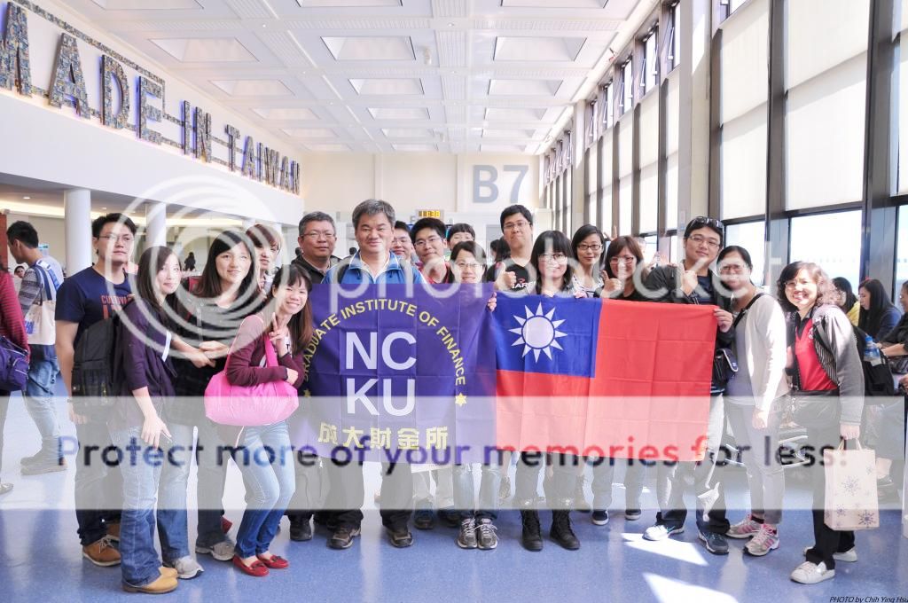 在候機室也來張團體照(是說這群人連國旗都帶了也太愛國了吧?!)